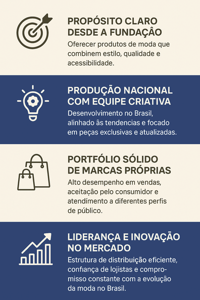 Fundada em 2003, nossa empresa nasceu com o propósito de oferecer produtos de moda que unissem estilo, qualidade e acessibilidade a todos.